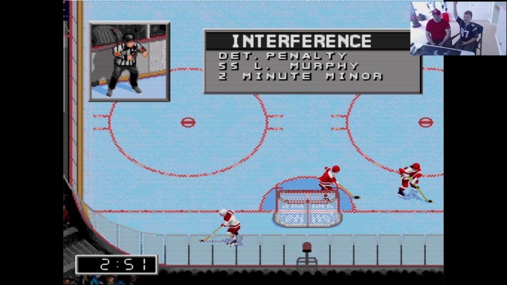 I’m one of those hardcore retro gamers that believes that games changed significantly when we went from sprites to 3d rendering. Don’t get me wrong, I’m not bashing the amazing advances we have experienced in gaming, but there is little doubt that games changed significantly when the focus became how well a developer could render a 3D environment. It was all about immersion. The first effort I recall which rendered hockey players in 3D was on the Sega Saturn. Sure, it was cool and different, but it never challenged the magic that was achieved with the NHL series on 16 bit platforms. The precision and speed of the game could not be matched. You won and lost by your ability to translate thought into a button push in the fraction of a second. It so happens that my son has made the claim that he is a better player than yours truly in the NHL series. Today, we got down to business. It’s going to be a short best of 3. We have agreed to take the same team, as to avoid any advantages which might favor one player over the other. Game one was a tough fought battle. See for yourself..